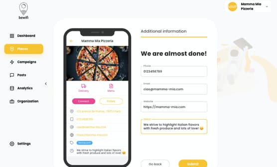 Have you invested in digital services? Highlight them on your bewifi profile and connect your customers to the Internet, so they can access it worry-free.