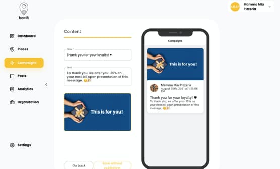 With the Campaigns function, send notifications directly to your customers' smartphones when they are at your home. Receiving a promotional offer while you are there is no longer advertising but a good deal!